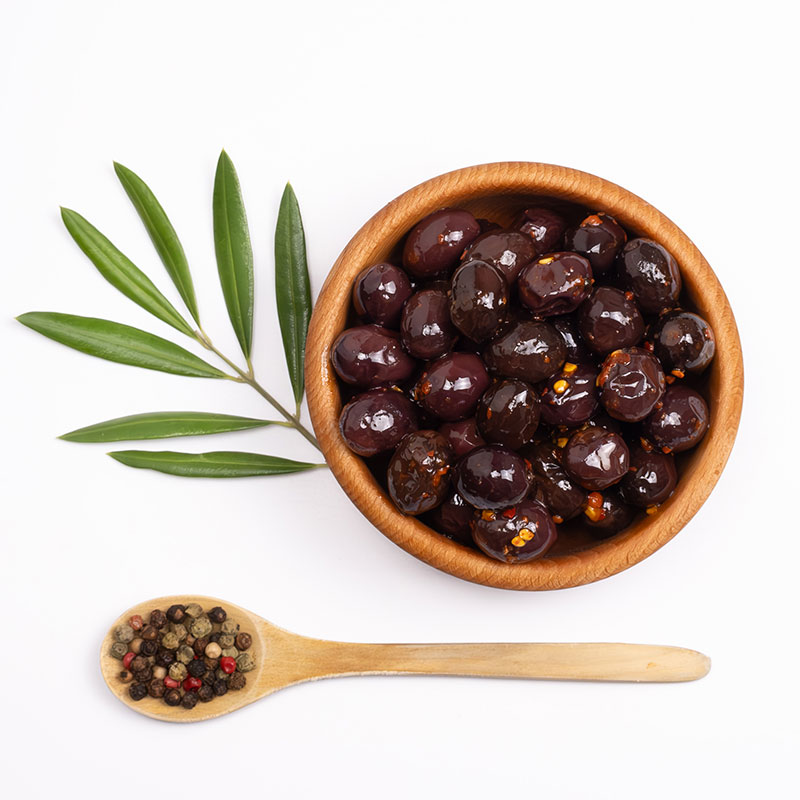Si tratta di una delle nostre produzioni locali: olive nere Leccino, presentate con olio e peperoncino; nonostante la delicatezza della cultivar, sono il condimento e la nostra preparazione a renderne più “carichi” i sapori. Per questo può considerarsi un vero e proprio piatto indipendente.